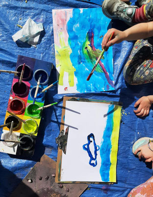 Seit März 2025 rollen wir in Oldenburg aktiv mit unserem mobilen Kunstkoffer, der mit verschiedenen Materialien wie Ton, Farben, Pinsel, Papier, Holz, Naturmaterialien etc. ausgestattet ist, in