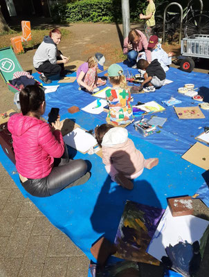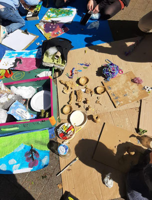 den öffentlichen Raum und bieten ein kostenfreies Kunstangebot für Kinder, Jugendliche und junge Erwachsene an (Projektleitung Sylvie Dimmer). Momentan erobern wir jeden Mittwoch von 15 – 17 Uhr